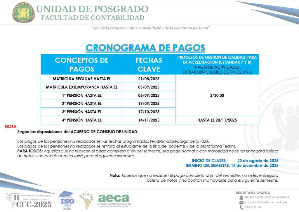 Se informa a todos los alumnos que el proceso de matrícula ha culminado el 05 de Setiembre